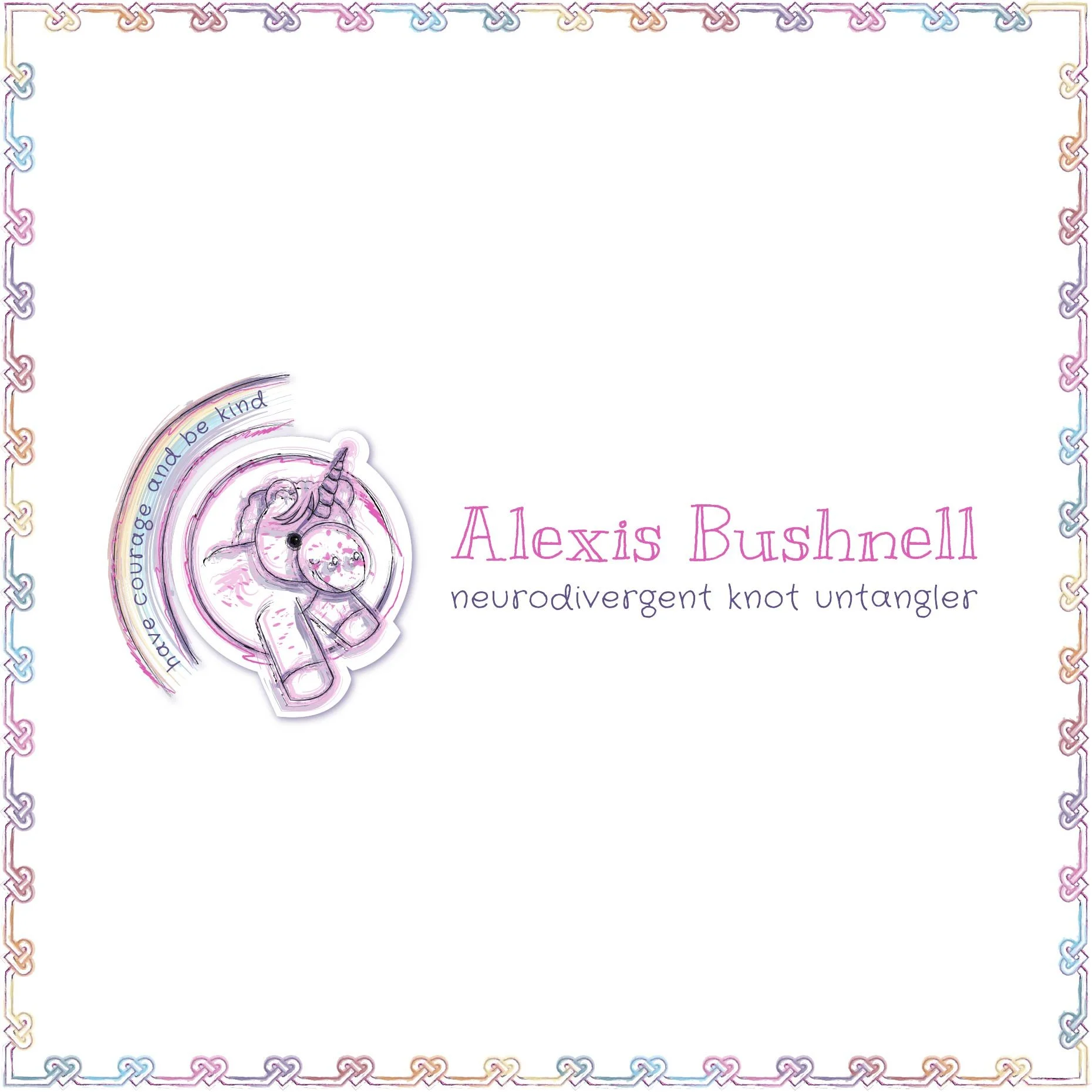 Alexis is bold, colourful, and completely unapologetic about it. Her brief? Bright, playful, rooted in her motto 'Have courage and be kind' - and it absolutely had to include unicorns and rainbows. When she sent me a photo of her sticker-covered notebook early on, I knew we were going to have a lot of fun.